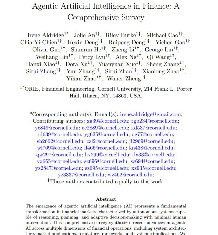 This survey studies the emergence of agentic artificial intelligence in financial