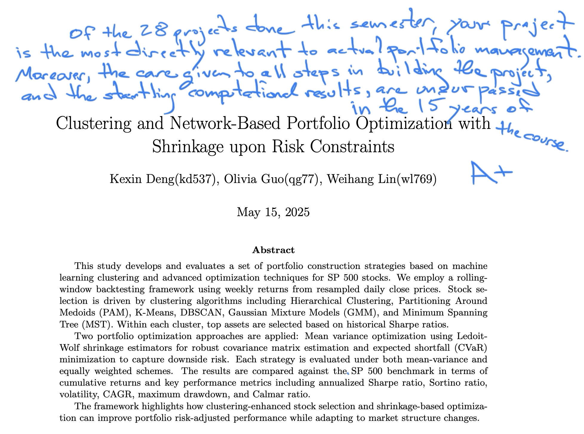 ORIE Asset Management Project, 2025